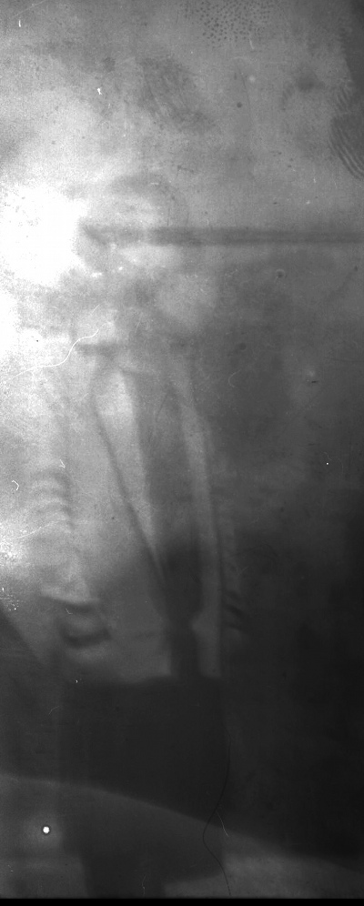 ecco una parte di un nebbiosissimo negativo che misura 58 x 82 mm (pollici 2 e 1/4 x 3 e 1/4, credo; dunque possibile formato kodak 105, 620 o 520 film pack?).